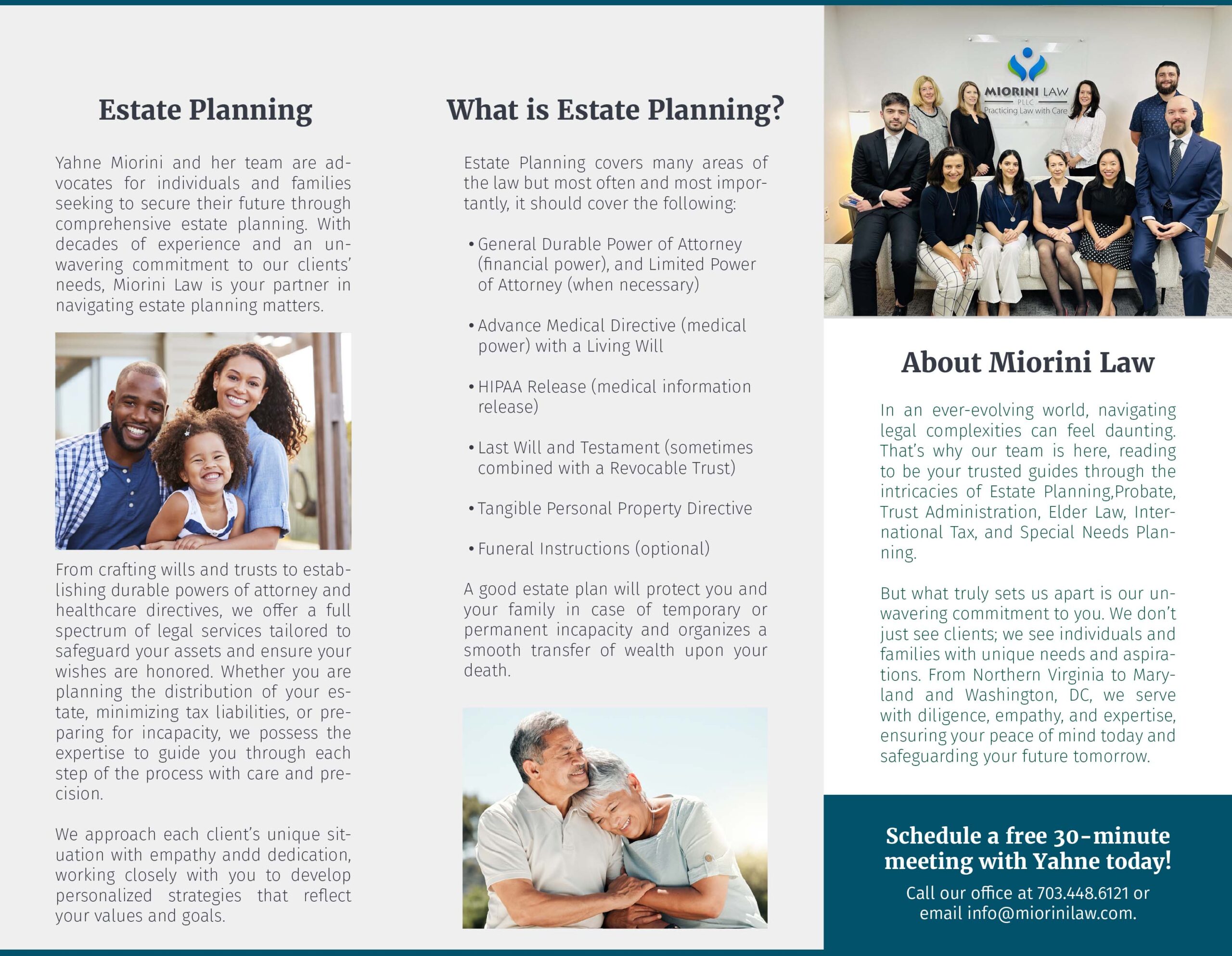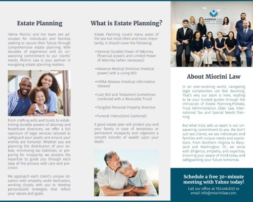Miorini Estate Planning Law Firm is a female-owned estate planning practice in Vienna, Virginia, serving families and seniors through life’s important legal transitions.